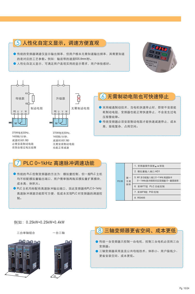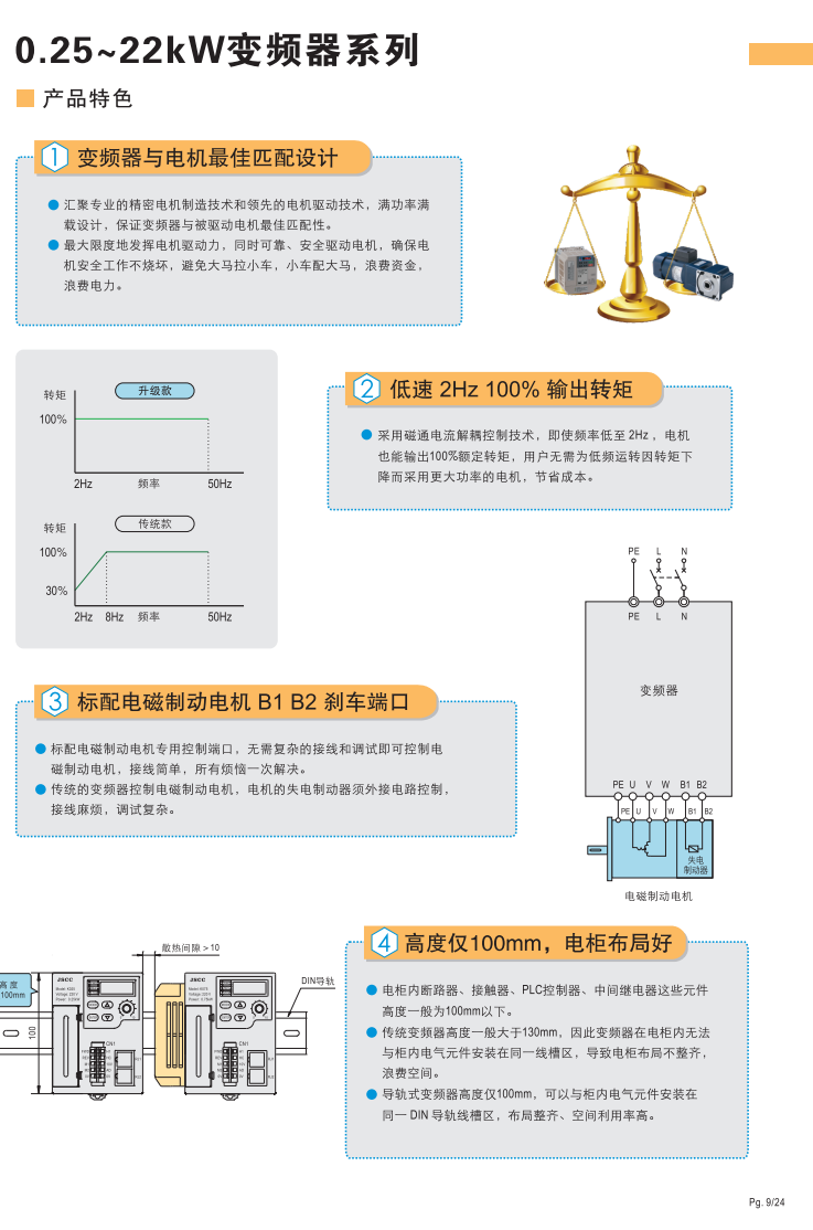 豐富功能,簡(jiǎn)單操作,輕松設(shè)定· 0-10V模擬量輸入輸出 · 三段多段速 ·直流制動(dòng)