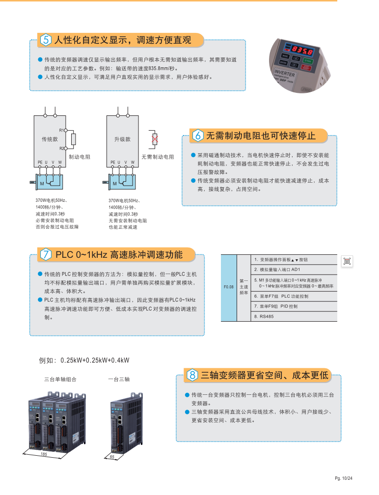 豐富功能,簡單操作,輕松設定· 0-10V模擬量輸入輸出 · 三段多段速 ·直流制動