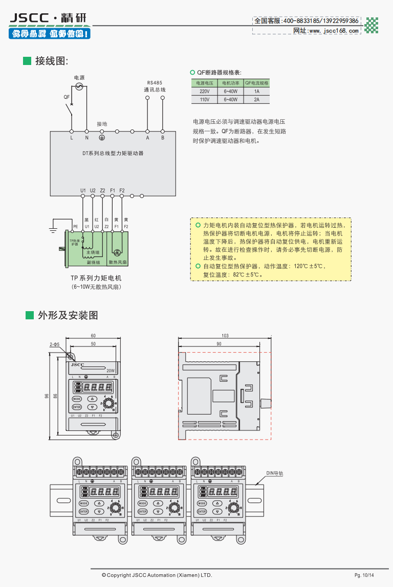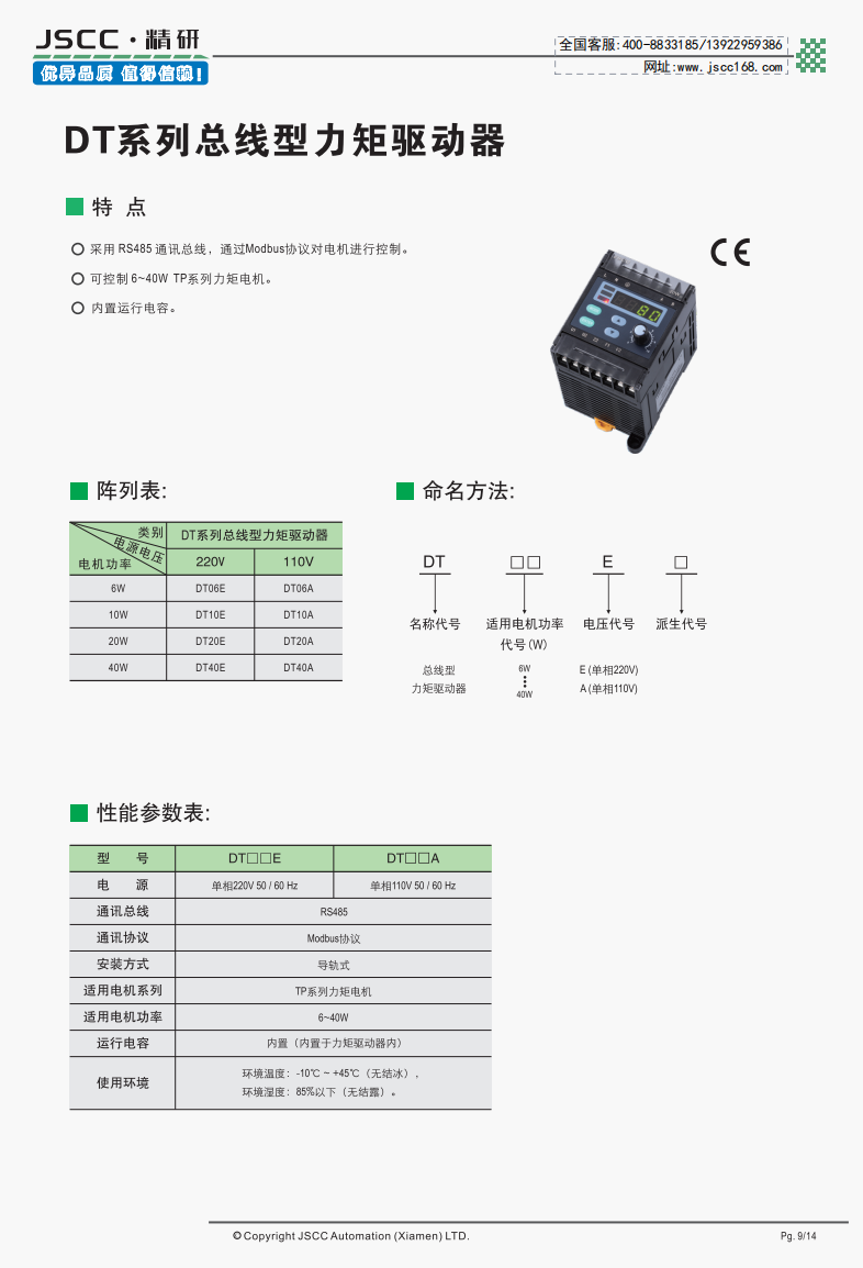 精研電機始終秉承“精益求精,研發創新”的理念為客戶提供優質可靠的產品。 DT總線型力矩驅動器是專門用于控制TP系列力矩電機的產品,采用RS-485通訊總線,通過Modbus協議對電機進行控制可控制,內置運行電容 提示DT系列需要搭配我司TP系列力矩電機使用,在選購本產品時請注意。
